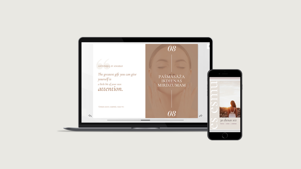 Ceļvedī esmu apkopojusi: meditācijas, metodes, pieredzes stāstus un dažādu jomu ekspertu padomus, kas man palīdzēja kļūt iejūtīgākai un mīlošākai pret sevi. Un nonākt no stāvokļa ‘’Es neesmu pietiekami laba’’ uz ‘’Es esmu vērtīga, jo esmu’’.