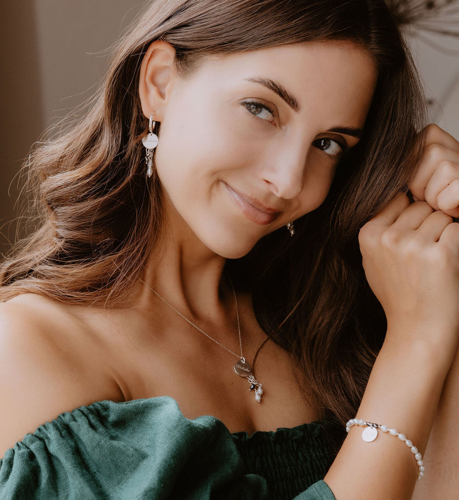Saldūdens pērles ir rūpīgi atlasījis diplomēts pērļu eksperts no Anglijas. Tāpēc vari būt droša, ka ''es esmu'' rotās ir īstas pērles. Tās ir uzvērtas uz juvelieru tērauda trosītēm, kuras pārraut pušu ir gandrīz neiespējami. Katra pērle ir atdalīta ar sēkliņpērlīšu starplikām, lai tās neberzētos viena pret otru un saglabātu savu sākotnējo skaistumu.