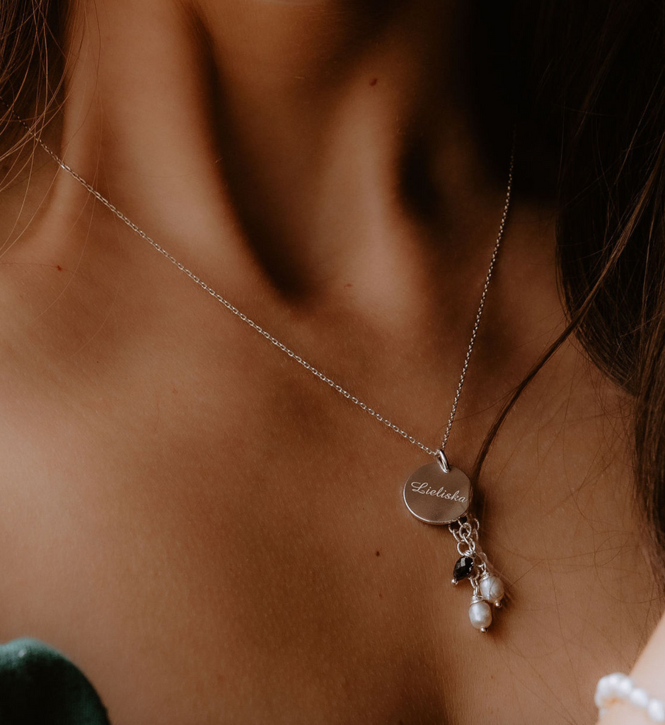 Kolekcijas LIELISKA ķēdītes kaklarotas medaljonā ir iegravēts vārds ‘’Lieliska’’. Uzliekot/novelkot ķēdītes kaklarotu vai paskatoties spogulī, Tu sev atgādināsi, ka esi LIELISKA.